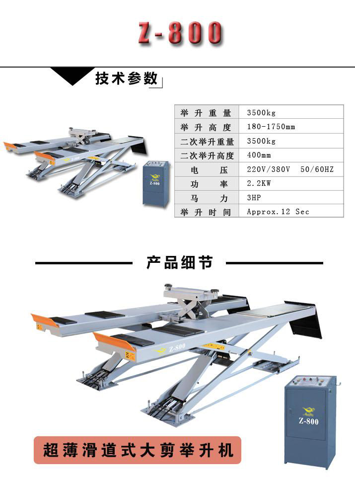 阿拉丁3D四輪定位儀 超薄滑道式大剪舉升機 Z-800(單滑車)