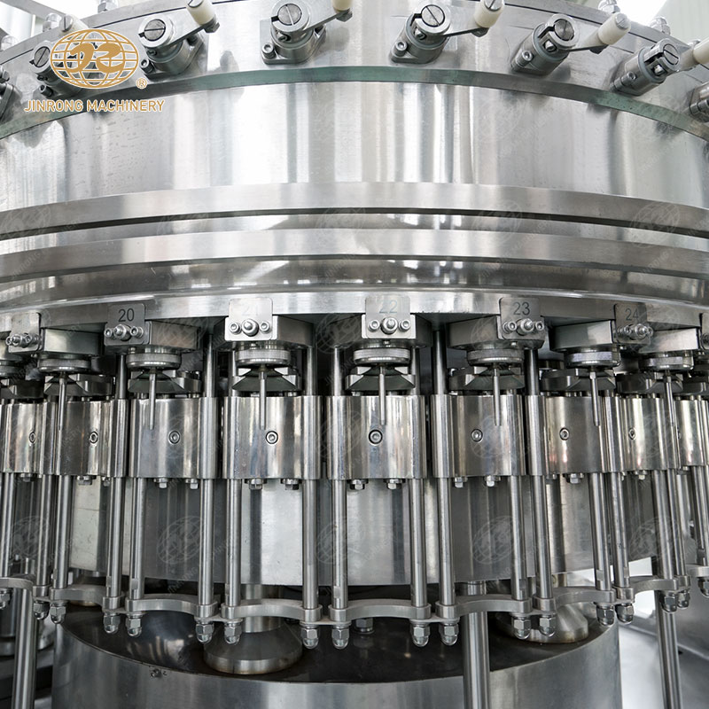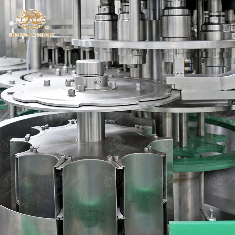 灌裝閥采用等壓式機械閥,灌裝快捷靈敏,灌裝液面精度高。碳酸飲料灌裝機采用無級變頻調速。導瓶系統,結構簡單,可根據瓶型進行快速方便變更。