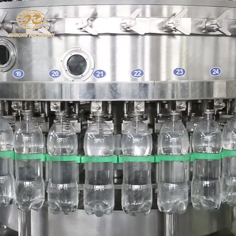 金榮機械生產的三合一碳酸飲料灌裝機采用不銹鋼材料制成。具有結構合理、工藝先進、操作方便、適用范圍廣等特點,是中小型飲料廠家理想的生產流水線機組。