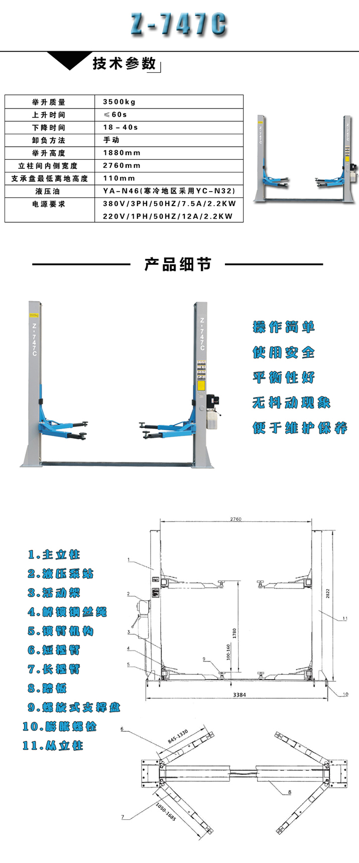 阿拉丁汽保工具雙柱舉升機Z-747C