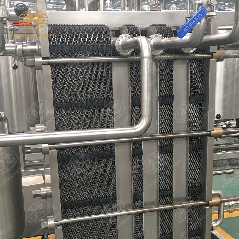 主要由板式換熱器、平衡桶、輸送系統、物料管路系統、蒸汽管路系統、熱水系統、物料自動回流系統、溫度自動控制、框架及電器控制系統等系統組成。