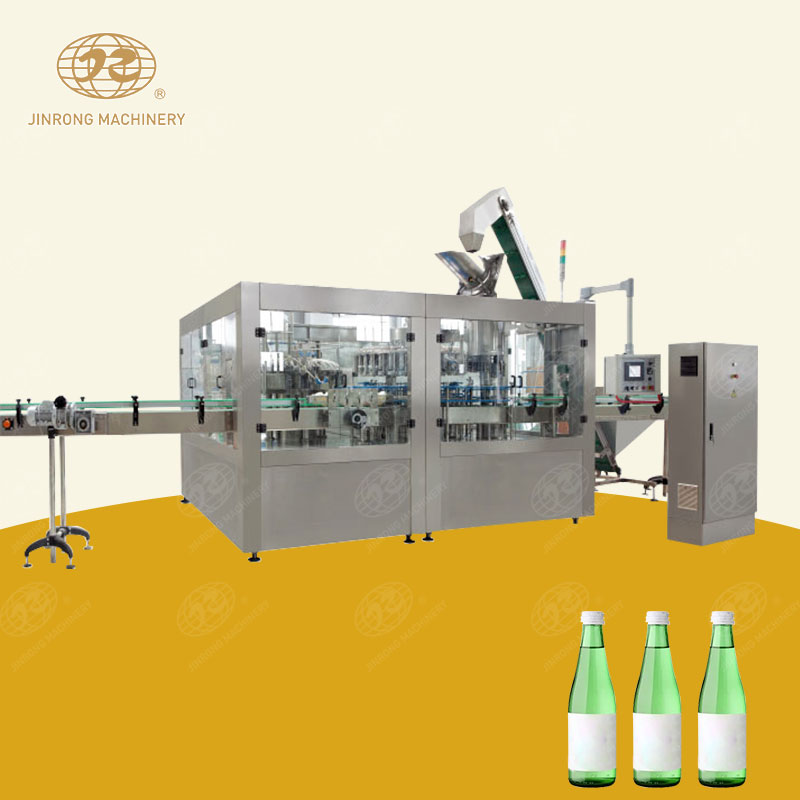 玻璃瓶果汁灌裝機主要用于玻璃瓶果汁飲料的生產,成套玻璃瓶果汁生產線適合芒果汁、藍莓汁、桑葚汁、菠蘿汁、檸檬汁、柚子汁等。在玻璃瓶灌裝一體機上實現沖洗,灌裝,三旋蓋和四旋蓋等封口的功能。玻璃瓶果汁灌裝機械具有結構緊湊、占地面積小、設計科學合理、造型美觀、操作維修方便,自動化程度高等特點,適合中小型果汁廠。玻璃瓶果汁灌裝機采用卡瓶頸懸掛工態設計,且采用灌裝閥升降,采用人機界面觸摸屏控制、PLC電腦控制、變頻器控制等技術。
